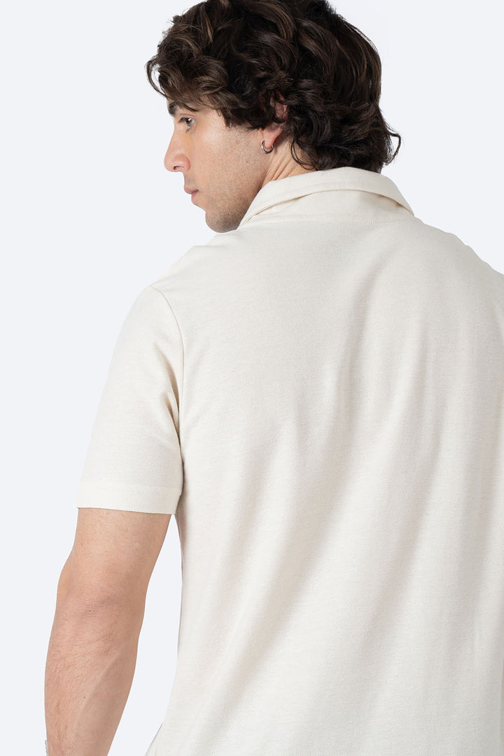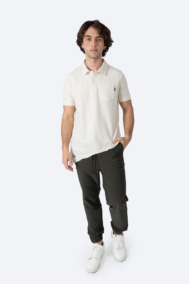 Polo clásico en beige confeccionado en 100% algodón. Diseño minimalista con manga corta y bolsa funcional al pecho que añade un toque de sofisticación. Prenda versátil ideal para crear looks casuales o semi-formales. Su construcción en algodón puro garantiza comodidad, transpirabilidad y durabilidad en el uso diario. Perfecta para cualquier ocasión.